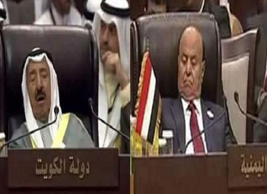 مسخرة .. بالصور الرئيس اليمني و أمير الكويت يدخلان في نوم عميق خلال الجلسه الافتتاحية للقمة العربية