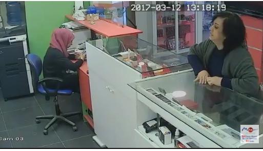 كشفت كاميرا المراقبة، امرأة أنيقة تسرق هاتف جوال من داخل محل هواتف بطريقة ماكرة.